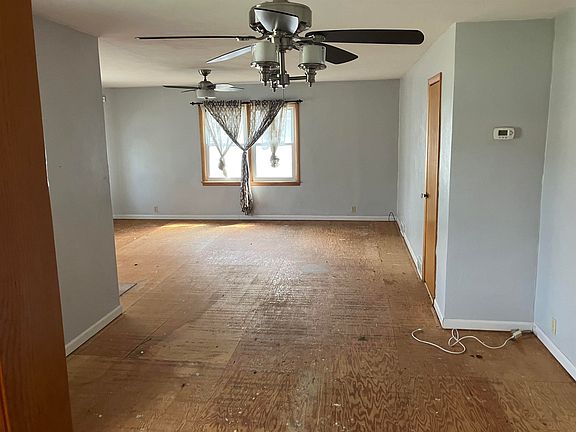 Walk thru the front door into the living room and you'll see a sub floor but no flooring. Sellers have a $2000 floor allowance at closing. Go to the hallway and you will find the Bathroom and the 2 bedrooms. back out of the hallway and into the kitchen, which has plenty of cabinets. The Main floor was given a new paint job in all rooms and the basement floor was also painted. Also in the basement there are several different rooms the laundry room is 1 and it's pretty big on it's own. There are a couple rooms you could turn into non-conforming bedrooms along with more storage areas. There is also a one stall garage attached to the home.