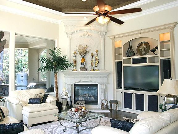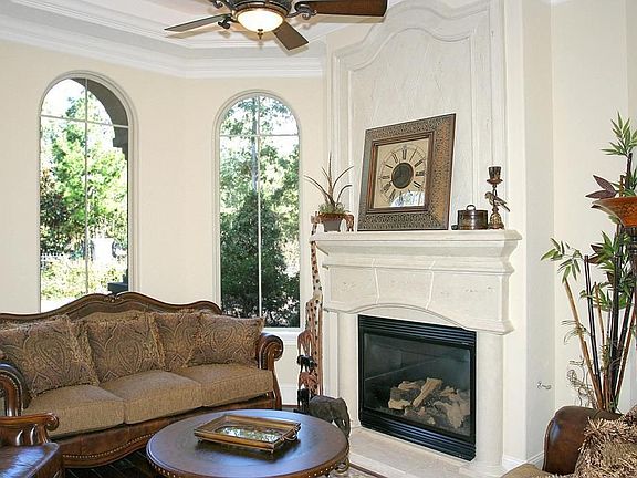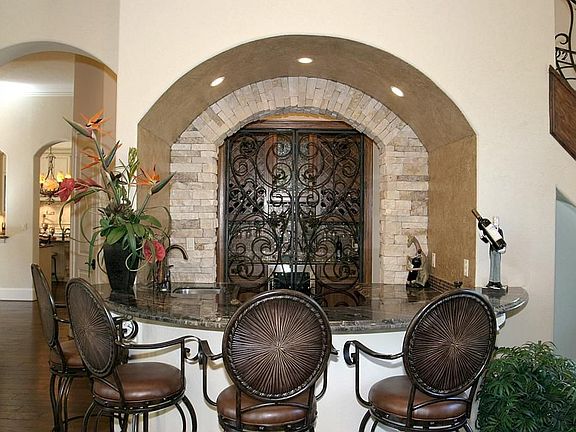 This unique stucco estate on 1 + acre wooded culdesac fully fenced & gated lot is located approx 10 minutes from I-45 & Hardy Tollway in prestigious Grogan's Point!Completed in 2009,it lives like a one-story w/a luxurious master suite & 2 other suites downstairs!Master is grand w/huge bath & 2 very spacious closets!Fully equipped media room down!Kitchen is chef's delight w/SS appliances,center island,long breakfast bar!Wine room!Covered lanai w/fireplace!Fab outdoor kitchen!Bar!Pool!Spa!More!