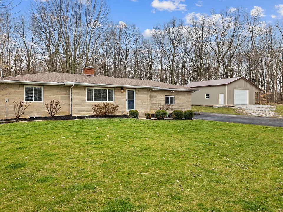 LOCATION, LOCATION, LOCATION! Country living within minutes from Gahanna & New Albany! The inside has been recently updated with original hardwood floors that are in excellent shape. The kitchen has updated cabinetry, newer countertops, a custom built-in bench & a stunning wood wall that is a great focal point! There is main floor laundry located right as you enter from the garage. The master bedroom is HUGE featuring extra tall ceilings, a walk-in closet & the ensuite bathroom has been fully renovated. There is also a huge unfinished basement for extra storage or could be potentially finished for additional living space. The BRAND NEW pole building can easily fit up to additionally 4-6 cars or could be an awesome workshop.