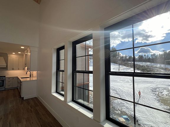 A SHOW-STOPPER IN UPSCALE SLOPESIDE LIVING. Completed in time for winter fun, Fairbank Lodge, building 3 of Kearsarge Brook at Cranmore Mountain Resort is the talk of the town. Incredibly stylish two floor townhouse condominiums occupy the third and fourth floors of the new lodge building, with commercial ski and food services just below. This is a one-of-a-kind opportunity to literally be on top of it all. Each customized condominium has its own unique design and finish work, so no two living spaces are alike. A beautiful propane fireplace adds warmth, dimension and ambiance to the great room feel, complemented with high cathedral ceilings and large black cased sliders to a private balcony. Bright and spacious kitchens highlight the living space with an abundance of cabinets, efficient appliances and gorgeous large granite counters, all hand selected to owners’ taste. This unit offered 2 bedrooms, and 2 baths. Many upgrades to the original list of builder specifications, so check out the documents and photos attached to best discern the differences. Ski from your building’s front door and take the elevator downstairs for fabulous food, pub and the private owner lockers. A beautiful amenity building with heated pool and exercise room are also located in the base area. Cranmore Mountain Resort caters to year round fun so these brand new, on-site condominiums occupy some of the very best real estate in North Conway and the Mt Washington Valley.