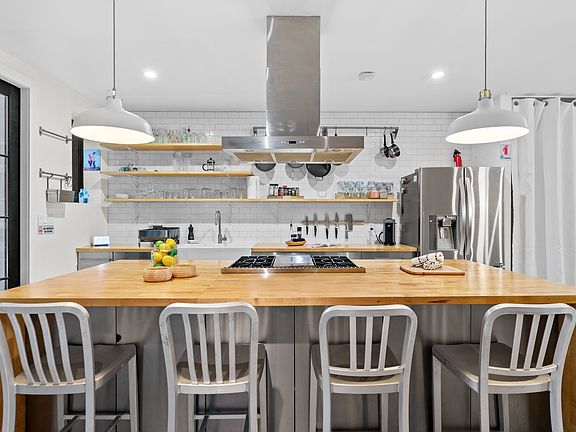 Located on the hottest block in Bushwick, our lovely duplex has loft like open space and an oasis in the back yard. Recently renovated including a Chef's kitchen with a large island for entertaining and a lovely covered patio. Downstairs the bedrooms are large and open, with heated floors and a large bathroom with a "wet room" and rain shower. Washer & Dryer available upon request, same for kids facilities. We are half a block from the L train and in restaurant/art/entertainment central!