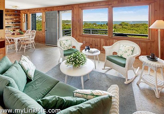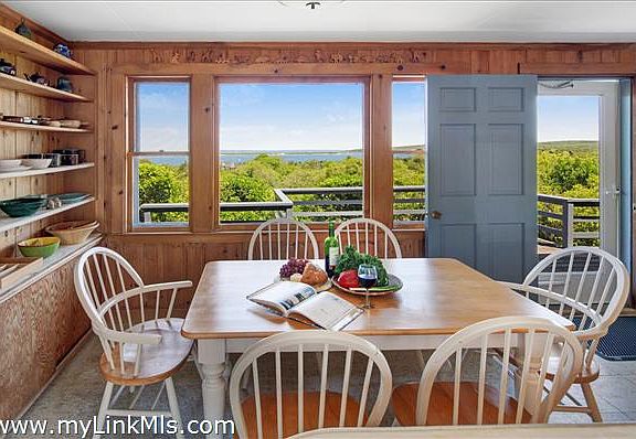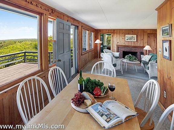 A Charming summer home with magnificent, uninterrupted views of Menemsha Pond, Vineyard Sound, and on a clear day the Elizabeth Islands, in the distance. The property comes with access to Short Beach; a private beach 10 minutes away by foot and just a few minutes by car. The beach comes with small boat launching rights. The house has great cross breezes on warm days and a fireplace for when it's chilly. It has been in the same family for over 60 years and has been called "Windhover" based on the Gerard Manley Hopkins poem by that name. The property is on what is now considered an undersized lot, but is grandfathered in for zoning purposes. Property is located close to State Road, but has extensive privacy with natural brush surrounding the perimeter.