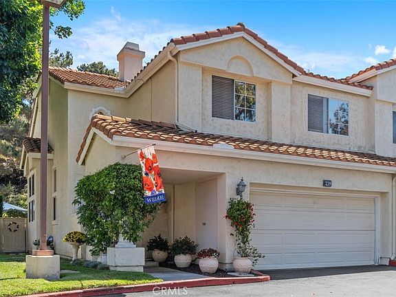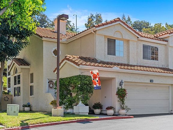 This elegant 3-bedroom, 2.5-bath townhome is a rare gem offering privacy, charm, and soaring architectural character. Step into a bright, open floor plan highlighted by approx. 22-foot ceilings, rich wood flooring, and walls of windows that flood the space with natural light. The chef’s kitchen features gleaming granite countertops with custom cabinetry and flows seamlessly into the living and dining areas—perfect for entertaining. Upstairs, the primary suite includes a private deck with hillside views, ideal for your morning coffee or unwinding. Out back, enjoy a lushly landscaped yard and garden, framed by natural vegetation and a peaceful, tree-lined hillside that ensures serene living. Set in a quiet, tucked-away location, this home offers both peaceful seclusion and exceptional convenience. Enjoy direct access from the attached two-car garage, complete with extensive custom cabinetry for excellent storage. Additional upgrades—like lined pipes, retractable screens at front door and custom doors between the primary bedroom and bath—add comfort and confidence. With close proximity to scenic trails, beaches, downtown San Clemente, and major commuter routes including nearby freeways and toll roads, this townhome blends serene living with everyday accessibility. And, no Mello Roos tax!