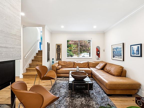 Quiet central lonsdale cul-de-sacLarge dining areaRedesigned kitchenSleek white cabinetryQuartz countersGlass-covered deckOpen flex space