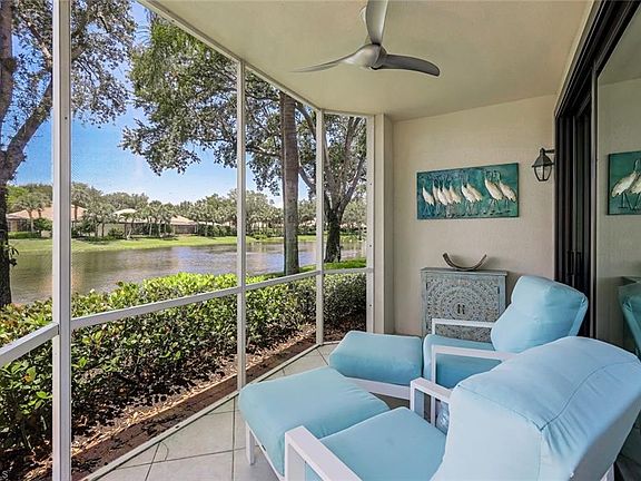 EXCEPTIONAL HOME IN THE HIGHLY SOUGHT AFTER RAVENNA IN PELICAN MARSH! It is not often that I rave this much, but you will see the moment you enter this totally renovated 2 bedroom plus den, 2 full bath spacious home with a one car attached garage, that you will want to say SOLD!!!! Ravenna has just undergone renovations which include a refreshing new paint job, new hurricane proof windows and doors and new roofs on all the units, which has enhanced the community to the height of stability and desirability. The Sellers have done an outstanding job of picking only the top end cabinets, tile, flooring, lighting and accents for this home. Kitchen cabinets and storage have pull out drawers with soft close features. The first floor units, such as this one, boast extra storage, and a peaceful lake view setting which is worth the price on its own!! Furnishings are impeccable and included! Understated, pristine and clean, this home has it all! COME SEE BEFORE YOUR AMAZING NEW HOME IS GONE!!!!