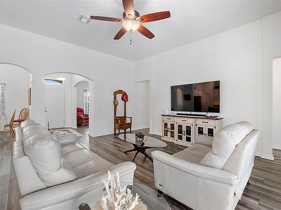 The desirable split floor plan offers privacy and functionality, while the open layout flows effortlessly into a spacious screened-in patio and saltwater pool, perfect for year-round entertaining.