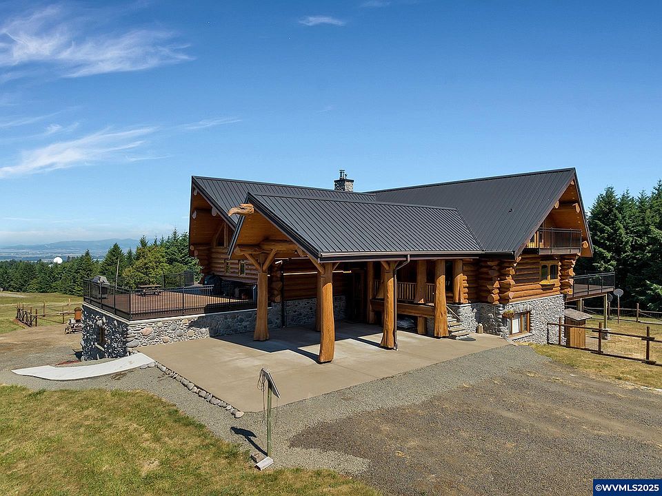 GORGEOUS custom Log Home on over 42 private acres with spectacular views of the Willamette Valley! Situated just 21 miles from Eugene Airport, 21 miles from Oregon State University and 21 miles from University of Oregon! Beautiful solid wood doors with detailed touches! Enjoy an abundance of wildlife outside every window! Large primary suite on main level with 3 large additional bedrooms. Magnificant 2400 sq ft deck, with a hot tub overlooking pastureland, great for horses, vineyard, or sheep!