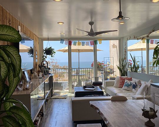 This rare top-floor, end-unit penthouse is one of only six in the entire complex and offers breathtaking ocean views from every room. With 3 bedrooms and 2 bathrooms spread over two levels, the home features a sleek, modern kitchen with quartz countertops, white cabinetry, and stainless steel appliances, along with beautiful wood flooring throughout. Step out onto the private balcony off the living room to soak in sweeping coastal views and stunning sunrises. The expansive primary suite is filled with natural light from extra windows facing south, east, and north offering quiet time and privacy. The unit includes two covered garage parking spaces, each with its own built-in large storage closet, plus an additional designated storage closet and guest parking. Recent upgrades include instant hot water at all sinks and a newly updated electrical panel approved by the City of Malibu. Located in a secure, guard gated community with 24/7 security, tennis courts, a heated pool, and a fitness center, walking distance to the beach, Whole Foods, Pepperdine, and Malibu's best dining and shopping- this is a truly special opportunity to own a slice of coastal luxury.