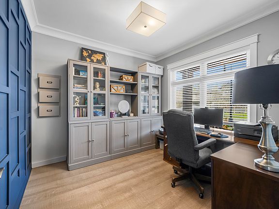 Experience luxury living in sought-after Cottonwood, just steps from Alexander Robinson Elementary. This custom-crafted home impresses from the moment you enter the grand foyer. Main floor showcases wide-plank engineered hardwood, a formal dining room with crown mldings, and a designer kitchen with quartz island, wood accents, coffee station with instant hot water, and Thor range w/ Kitchenaid Pro appl. Step through pantry to mud room and garage. Family room with custom built-ins and gas fireplace opens to the backyard retreat with hot tub deck, gas fireplace, pond, waterfall, and irrigated perennial gardens. Upstairs features a luxe primary suite with spa-inspired ensuite plus 3 bedrooms with ensuites. The basement boasts 11.5’ ceilings, gym, craft room, roughed-in suite potential. + A/C