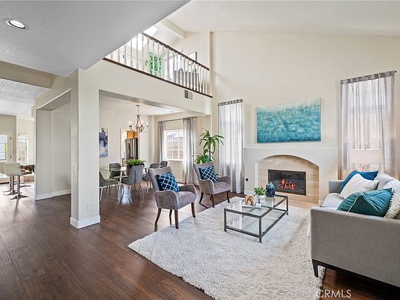 Tucked away on a peaceful cul-de-sac, this beautifully maintained 4-bedroom, 3-bathroom home offers comfort, functionality, and charm in every detail. With 2,747 square feet of living space, the home features a bright and open floor plan, soaring ceilings, and rich wood flooring throughout. The inviting living room centers around a cozy fireplace and flows seamlessly into the dining area and spacious kitchen, complete with granite countertops, a large island, and ample cabinet space. The kitchen overlooks a second living room that opens to the tranquil backyard through a sliding glass door. Conveniently, there is a downstairs bedroom with an adjacent bathroom featuring a walk-in shower.
