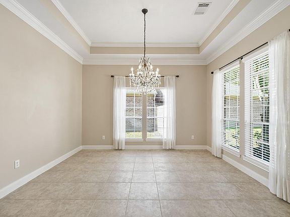 Home officeTranquil backyardHigh ceilingsCovered patio areaDining roomBeautiful chandelierSpa-like en suite bath