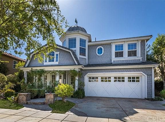 This beautiful Cape Cod home is located in the exclusive gated community of Bridgeport on "The Island", Valencia's only gated waterfront community. This five bedroom home is one of the largest floor plans. This light and bright home features formal living, dining room, a full bed and bath downstairs, a large family room open to the kitchen, a bonus room or game room, and in addition there is a half bath downstairs for guests. Upstairs includes a large loft area, 4 bedrooms and 3 bathrooms upstairs(2 with private baths & 2 with a Jack & Jill bath). Enjoy your master suite with its own fireplace, a deck with views of the river and also boasts a retreat & large bathroom with a walk-in closet. The tranquil and open backyard has a covered patio and is situated beside a running creek and is a lovely for entertaining with built in BBQ and seating area. Bridgeport Island amenities include a spectacular community pool, spa, clubhouse/community room and 24-hour security patrol. Walking distance to the award winning schools, restaurants and shopping! Enjoy Valencia lifestyle at its finest and come see this home today!