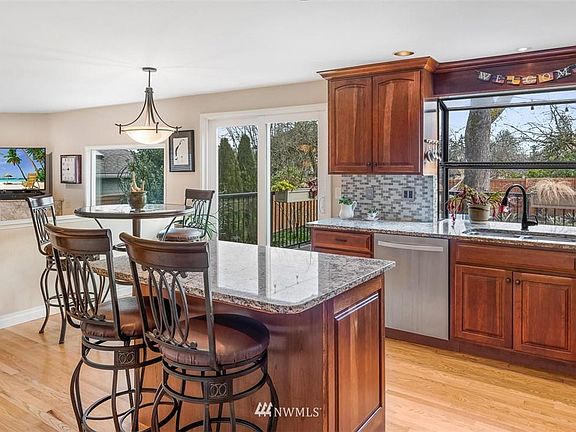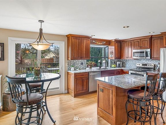 Beautifully remodeled Canyon Crest home. Soaring ceilings with gorgeous hardwoods through main level & stairs. Iron railing stairs. Chef's kitchen with hardwood floors, cherry cabinets with soft close doors & pull-out drawers, granite counters & island eating bar, mosaic backsplash, stainless appliances & eating nook. Beautiful double-sided black granite fireplace. Convenient upstairs laundry. The large park-like lot features a gorgeous spring & summer yard with flowering trees, shrubs & raised garden beds. This property is truly amazing!