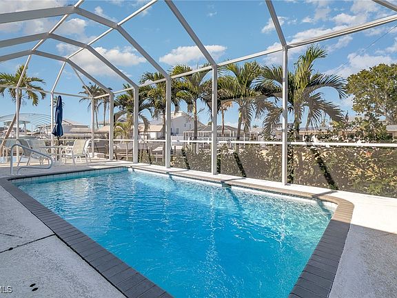 STUNNING WATERFRONT RETREAT! This 3 Bedroom, 2 Bathroom, 2 Car Garage POOL HOME offers 50 feet of water frontage and is just minutes to open water — all perfectly situated on an oversized corner lot in desirable St. James City. CLICK VIRTUAL TOUR LINK 1 for the property video and VIRTUAL TOUR LINK 2 for the interactive 3D walkthrough. Step inside to a bright, open floor plan with tile flooring in the main living areas, recessed lighting, and panoramic water views that immediately set the tone for relaxed coastal living. The living and dining areas flow seamlessly to a large glass slider overlooking the canal — the perfect backdrop for entertaining friends and family. The chef’s kitchen boasts stainless steel appliances including a double oven and new dishwasher, Cambria Quartz countertops, tiled backsplash, a cabinet pantry, and soft-close cabinetry with pullouts for effortless storage. Enjoy casual meals in the waterside dinette framed by oversized windows. The spacious primary suite features serene water views, direct lanai access, a walk-in closet, and a private bath with dual sinks and a walk-in shower. Two guest bedrooms on a split floor plan offer comfort and privacy with built-in closets and a nearby guest bath. Extend your living space outdoors! The expansive screened lanai wraps around the side of the home, opening to your sparkling pool and oversized pool deck — the ultimate oasis for lounging, entertaining, and soaking in the Florida sunshine. A private dock with a 10,000lb boat lift makes it easy to launch into endless boating and fishing adventures. UPDATES & FEATURES: 2023 Roof | 2020 HVAC | 2023 Water Heater | 2025 Pool Pump | 2023 Pool Cage | Home wired for generator | Extra-high garage ceilings ideal for raised storage or a car lift. Nestled in the heart of St. James City, this home offers the perfect blend of small-town charm and vibrant boating lifestyle. Explore local seafood restaurants, boutique shops, and water-based activities right at your doorstep — or set out to discover Pine Island, Sanibel, and Captiva’s world-famous beaches. Don’t miss this opportunity to own your slice of paradise — schedule your private showing TODAY!