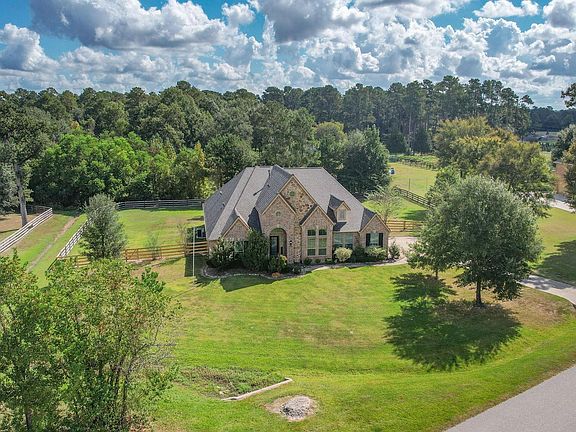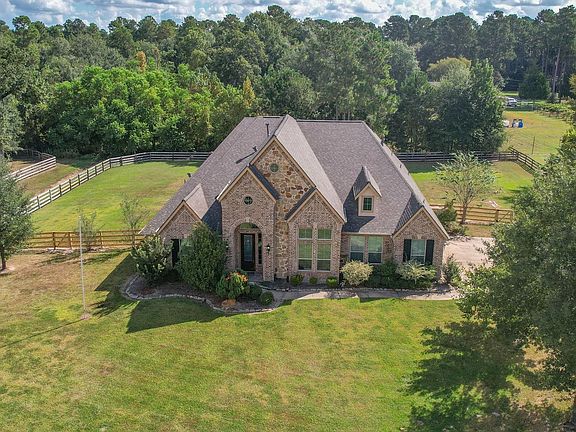 Stunning 1-story custom home situated on a HUGE *1* acre lot, backing up to private property used as a winery across the road from Spring Creek Growers (Christmas Tree farm!), and across the street from community vacant property (no neighbors!). NEW roof, carpet, & repaired fence (10/25). This home boasts generously sized rooms, fantastic for entertaining or just living large! Media room; home/office w/ French doors; formal dining; epicurean kitchen w/ island, loads of cabinetry & counter space; massive den/family room w/ stone fireplace; private owners' suite w/ a grand sized bedroom, executive bathroom featuring an over-sized shower w/ modest seat, whirlpool tub,2 vanities, & 12x10 well designed closet which maximizes space & storage. Upgraded engineered wood flooring, tile, & NEW carpet. Soaring ceilings! Sprinkler system, fencing, & a *3* car garage! Located in Montgomery County, and Tomball ISD, this community is small & intimate w/ only 50 lots AND check out this LOW tax rate!