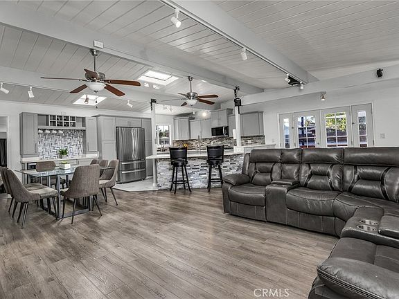 Welcome to this beautifully updated 4-bedroom, 3-bath home where modern design meets total energy independence. Fully electrified and powered by a paid-off 15.5kWh solar system with 17.5 years remaining on the grandfathered NEM 2.0 program, this home has not had an electric bill in years—even with an EV, AC, and outdoor spa tub. Upgrades include a new 200-amp service panel with dual subpanels, a 60-amp EV charger, heat pump water heater, mini-split AC/heater, and CAT6 internet wiring throughout. The open-concept living area features a custom-designed kitchen with stainless farmhouse and prep sinks, undercabinet lighting, pull-out shelving, a large peninsula with breakfast bar seating, and like-new LG and Samsung appliances. The adjoining living room offers an 85” 8K Samsung TV, surround sound, and custom built-ins for the perfect entertainment space. The primary suite is a true retreat, featuring a custom walk-in closet, luxurious bath with dual vanities, a large walk-in shower with four showerheads and bench seating, and a Euro-style wall-mounted toilet in a private room. Outdoor living shines with a beautifully finished backyard, complete with a natural gas BBQ and heaters, a 75” outdoor TV with surround sound, a 7-person spa tub, shade sails, fire pit, and USB outlets throughout. Two large custom sheds provide abundant storage and a finished gym space. Additional highlights include two custom-tiled bathrooms, modern water and drain lines, full exterior lighting, a newer roof and garage door, fully wired smoke and carbon monoxide system, and attractive front and side planter beds. Every detail has been thoughtfully curated to deliver comfort, style, and energy efficiency at its best.