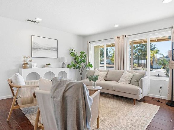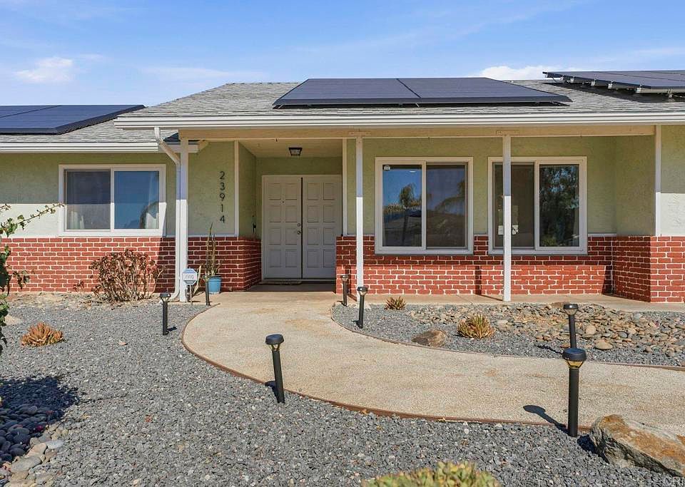 Welcome home to 23914 Couna Way in the beautiful San Diego Country Estates community of Ramona! This charming single-story home offers 3 bedrooms, 2 bathrooms, and 1,612 square feet of comfortable living space perfect for first time home buyers, those clients looking to escape condo life or looking to downsize. Situated on an oversize lot providing ample space for kids to play, pets to explore, entertaining and the opportunity for you to create your dream backyard. Enjoy energy efficiency with rooftop solar panels allowing you to stay cool on the hot summer days while help keeping your electric bills low while being just steps away from the local elementary school. San Diego Country Estates features parks, pools, tennis and pickleball courts, equestrian, golfing, community center and so much more. With its peaceful setting, family-friendly neighborhood, and spacious outdoor area, 23914 Couna Way is the perfect blend of comfort, value, with that Ramona small town charm.
