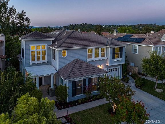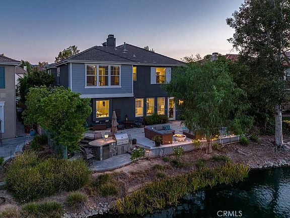Amazing barely describes this incredible 5 bedroom home right on the water in Valencia's only gated lake community "The Island." From 180 degrees of water right in front of your entertainer's yard to the remodeled kitchen and expanded downstairs bedroom as large as a second master you have an impressive, one of a kind and maybe truly the best that this exclusive neighborhood offers. Largest model with the downstairs bedroom expanded to double the size (with permit) and full attached bath. Perfect for parents or because of it's own entrance a "Next Gen" type of option. With a half bath down for guests this unique downstairs room offers total privacy if needed. Wood floors and newer carpet throughout, all of the highest quality. Striking floor to ceiling refrigerated 300 bottle wine cellar in the living room which is a conversation piece to be sure. French doors to covered patio on both sides of the property offering multiple gathering areas and the lot is larger than most with exceptional flagstone hardscape and stainless cook station with refrigerator. Outside furniture stays too! The kitchen remodel is equally tasteful with high end soft closing cabinets, quartz counters, gorgeous custom tile backsplash and stainless appliances. Crown and base molding throughout and updated lighting as well. Oversized master with incredible water views, double walk-in closets with organizers. The Bridgeport community is known for highly rated schools and an ambiance unmatched anywhere else in Valencia. The Island is the only gated community in Bridgeport and the HOA offers a terrific clubhouse and pool and with no mello roos taxes. Check the photos and come see this special home, there really isn't another like it!