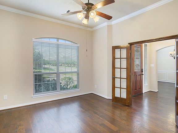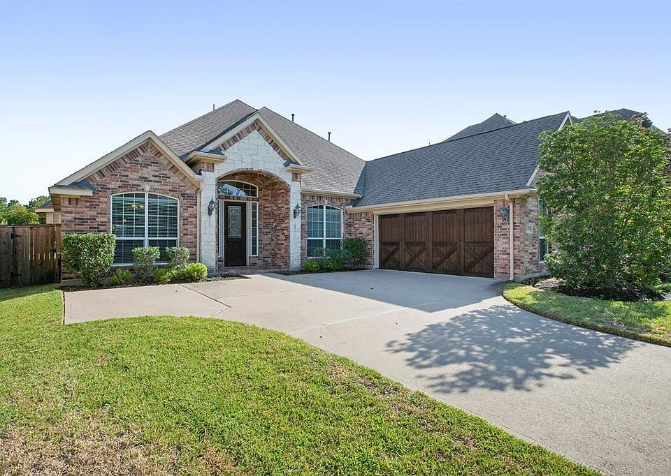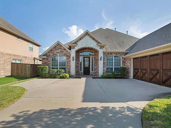 Gorgeous 5-bedroom, 4-bath home featuring wood-look tile floors, granite countertops, stainless steel appliances, mahogany cabinetry, and soaring ceilings in an open-concept design. Highlights include a stunning stone fireplace, French doors to the study, and a custom stone elevation with a handcrafted wooden garage door. The upstairs retreat features a full bath, walk-in closet, and 5.1 surround sound—ideal as a fifth bedroom, game room, or media room. The spacious primary suite boasts a private sitting area. Enjoy a tankless water heater, a comprehensive sprinkler system, and a spacious covered patio perfect for outdoor entertaining. This home is packed with upgrades and style!