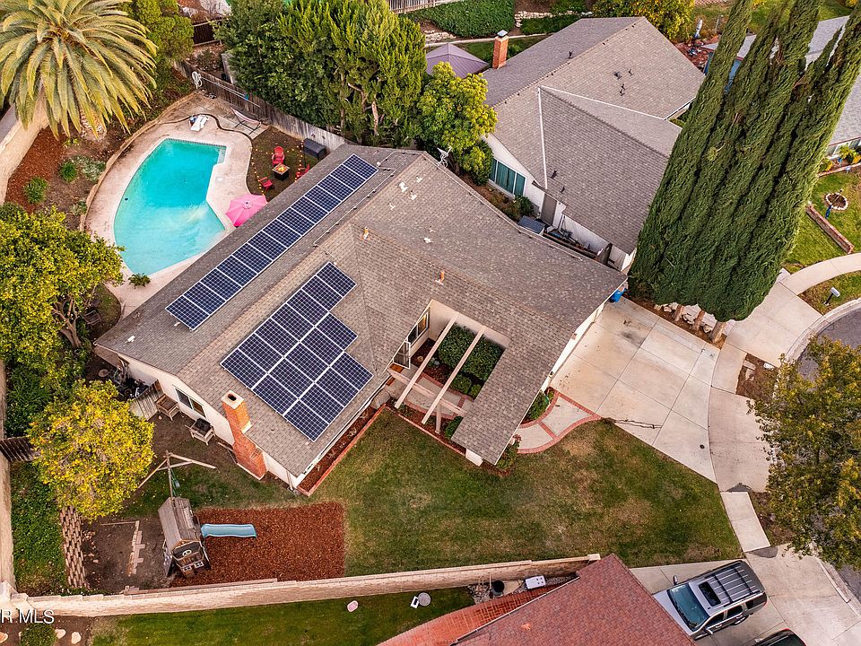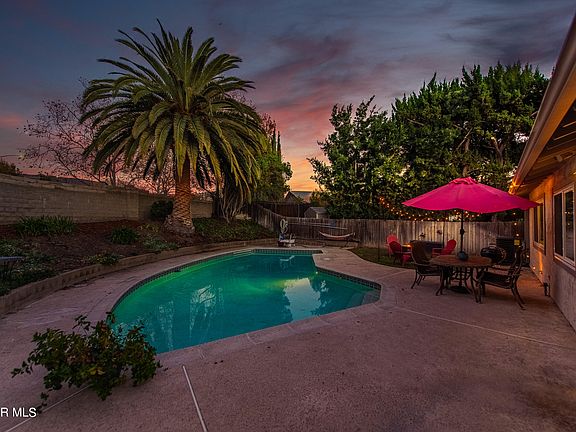 Ideally situated on a cul-de-sac in the highly desired New Monterey tract! This sprawling California Ranch-style home has it all! Nearby hiking trails, parks, shops, restaurants, schools, churches, golfing and more! Get ready to enjoy the outdoors just as much as the indoors. Enter the home on a charming arched walkway with lush landscape and traditional brick hardscape. Soak in the tranquility and privacy of your own sparkling pool, outdoor play-yard, 2 mature orange trees, 1 lemon tree, grassy lawns, fire pit area with romantic string lights, and an attached bar area near the kitchen. Prepare meals and spend quality time in the kitchen with granite counters, white cabinetry, porcelain sink, newer faucet, and high end matching GE appliances with fingerprint resistant finish. Offering a flowing single story floor plan with 4 bedrooms PLUS vaulted and beamed ceilings! Dreamy Master bedroom with ensuite bathroom, backyard oasis views, and large walk in closet! New easy to clean, waterproof wood-like flooring in bathrooms and laundry room with new sink! Energy Efficiency at its finest with Solar System transferred to the new owner free and clear, an attic fan that helps cool the house, tasteful ceiling fans, and newer dual pane expansive windows! Newer HVAC, gleaming oak wood floors, newer carpet, fresh paint, recessed lighting, tons of extra built in storage, 2 car direct garage! Cozy up by the white brick fireplace this winter season and enjoy Simi Valley's motto firsthand: ''Relax & Slow Down''. Flourish in a simpler, slower pace of life and begin your new home adventure at 2392 Timberlane Circle!