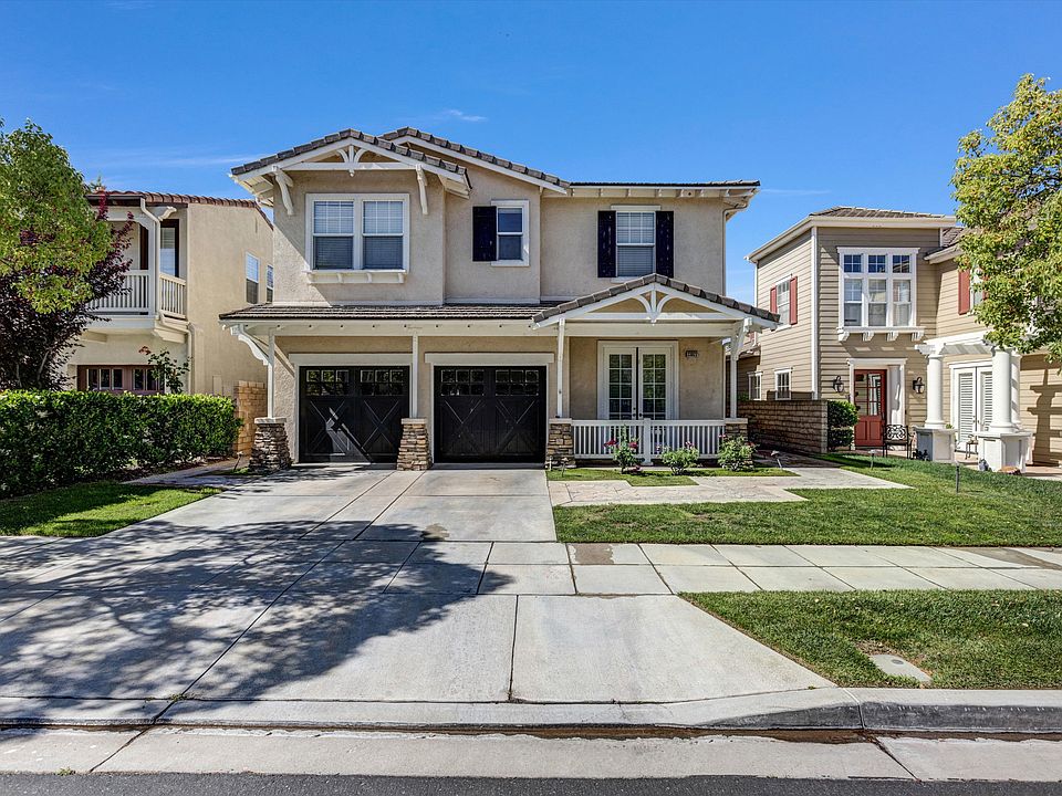 Nestled in the tranquil gated community of Bridgeport awaits your new home! Located in Valencia's highly sought after lake community sits this three bedroom, plus one office (that could be converted to a bedroom quite easily), and three bathroom home with soaring ceilings. Positioned majestically along the lakeside, the back yard offers gorgeous views of the water and don't be surprised if you see mother nature at work with ducks, geese, and their little ducklings. This home has meticulously been upgraded with modern new wide-plank flooring throughout the home and fresh paint. The primary bedroom includes an oversized en suite bath tub, dual vanities and a walk in shower. One of the bedrooms has a circular alcove that can be used as a reading nook, play room, or play castle for the little ones, with your imagination the options are endless. Step outside and indulge in the sun or breakfast al fresco in a private second floor balcony that leads from the primary bedroom. The home boasts General Electric appliances such as the refrigerator, oven, microwave and a Bosch dishwasher. Want more? You got it you'll find the three car garage with extra built in storage very useful and practical. You'll fall in love with the proximity of parks, paseos, shopping options, eateries and award winning schools. Dog lover? Enjoy the community and go for a stroll of what seems to look like a Hollywood movie-built set, just simply a beautiful backdrop to go on walks. The community also offers a club house and pool! Owner pays for gardening. Tenant responsible for all other utilities (gas, electric, water, trash). Small trained pets can be discussed.