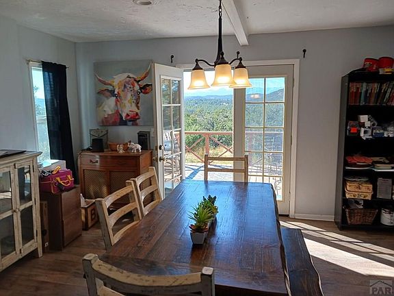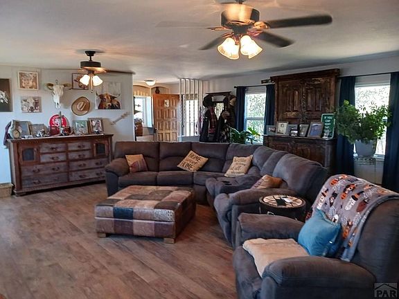 PRICE DROP!!!!Fantastic opportunity to acquire your own ranchette of 13+ acres of usable land with stunning views, spectacular rock formation, 20 minutes from Historical Trinidad with a great DOMESTIC well, all fenced and on a very private cul de sac. The Home is very spacious, with its large living room and a pretty dining area with french doors opening up to the deck for full enjoyment of the snow covered mountains. Nice detached 2 car garage, newly graveled driveway, 2 sheds, chicken coop, dog run, all fenced and ready for your wild west adventure.
