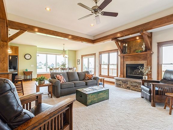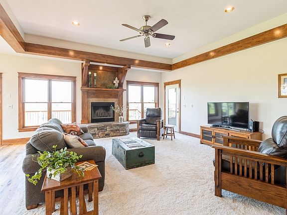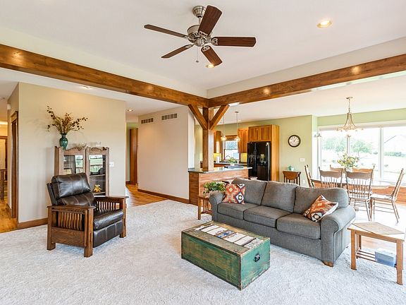 Phenomenal Opportunity to own your dream home on over 7 acres and over 3,500 finished sqft!. Tired of boring layouts with cheap materials? Opt for a custom built home with Craftsman-style finishes such as a large front porch, stone accents, solid Alder wood doors/trim and hardwood floors. The 1st floor features a great room with a hearth fireplace, dining area, office, ½ bath, laundry/drop zone, primary suite & open kitchen. Notable features are abundant cabinetry with pullouts, solid surface countertops, SS appliances, pantry, deck, screened-in porch and panoramic view of the great outdoors. The primary ensuite has double vanities, a walk-in tiled/steam shower, radiant heat & walk-in closet. The finished WO basement offers zoned radiant floor heat, & an enormous living room, 4 BR, 2 BAs, safe shelter for storms & sliding doors to a concrete patio. Tons of windows/natural light throughout. As you look in the garage, DON'T MISS the stairs in the garage that lead to the possible mother-in-law/young adult suite! New GeoThermal unit and carpet, Van Meter Schls. This is the ultimate acreage for outdoor living - bonfires, target practice, horses ATV riding and more.