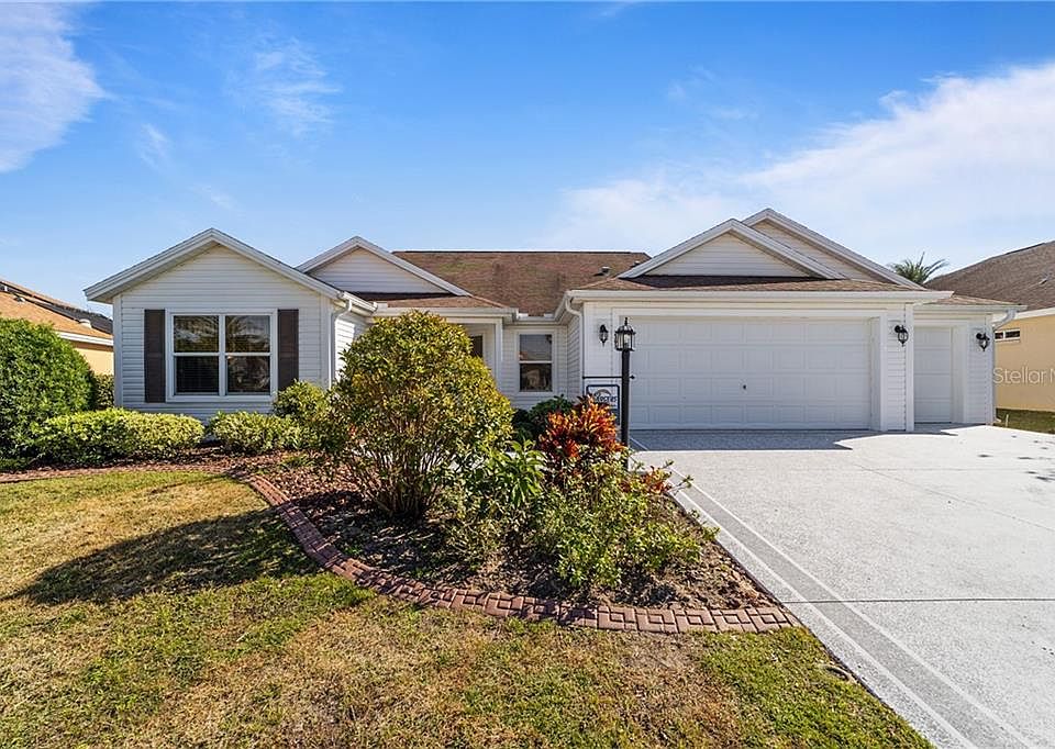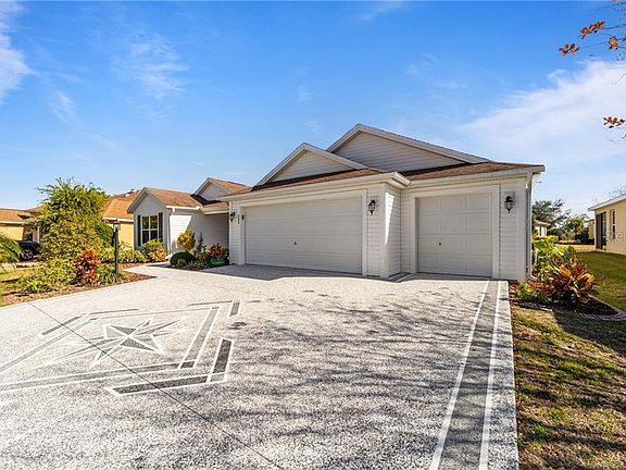NEW PRICE REDUCTION! BOND PAID! Beautiful Designer CAMELLIA home featuring Private Backyard with GOLF and WATER VIEWS in the desirable Village of HADLEY. Great outdoor living space w/residential lanai, extended screen enclosure and therapeutic HOT TUB - all with tile flooring. There's also an outdoor patio area with decorative fencing for grilling. Yard is professionally landscaped with rock mulch and concrete curbing. Popular Designer floor plan with open kitchen, high volume ceilings throughout, split bedrooms and breakfast nook windows overlooking the front lawn. Incredible Garage! The GOLF CART PORTION is 4-FEET DEEPER and features built-in cabinets in workshop area. Garage floor is EPOXY PAINTED with additional lighting and ladder to the attic. Walk back to the Master Suite featuring double walk-in closets, double vanities with beautiful granite countertops and a tiled walk-in shower. Additional highlights include: Beautiful New GRANITE countertops in Kitchen; Stainless Steel Appliances; ROLLOUTS throughout kitchen; Wood laminate and tile flooring throughout the home; Recessed Lighting; double-pane windows; humidistat,; washer/dryer and extra overhead cabinets in laundry room. No closet in front bedroom.