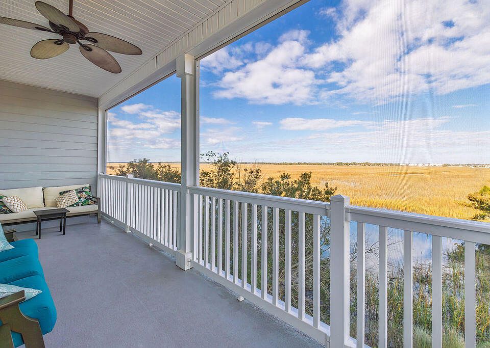 Peaceful marsh viewsInsteon smart-home lighting controlsSpacious screened porchSerene marshfront settingDual-sink vanity