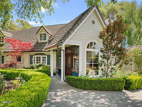 One of the most magical properties you will see awaits you in desirable Janin Acres in Solvang, California. This French country custom home includes a one bedroom apartment with kitchen and bath, and separate bonus guest quarters over the detached three car garage. A pool, barbeque and fireplace with extensive rock patios, pond and gardens is unlike anything in the valley. Outdoor living at its best. Remodeled in 2017, this home has soaring wood ceilings and a spectacular spiral staircase that welcomes you to the living room which opens to the patio. With two primary bedrooms, six fireplaces, a chef's dream kitchen plus butler's pantry and many other amenities too numerous to describe here this home is a must see for the buyer looking for quality, beauty, and one of a kind living.