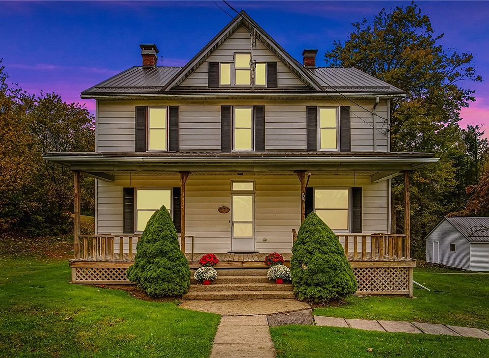 Classic farmhouse situated on 2.7 acres in Jenner Twp! This 4 bedroom, 1.5 bath home is loaded with timeless charm with it's hardwood floors throughout and pocket & french doors. The main floor features spacious living and family rooms, dining room (currently used as an office), a half bath, and eat-in kitchen. Upstairs, you will find 4 sizable bedrooms and a full bath. A large portion of the attic is finished & could be made into a 5th bedroom. Outside, enjoy either of the covered front or back porches or entertain on the patio! The one car garage is the perfect place to tinker with your favorite hobby. Additional features include a metal roof (house 2015, garage 2017), brand new boiler with 10 year transferrable warranty (9/2025), french drains, public water and public sewer. No zoning!