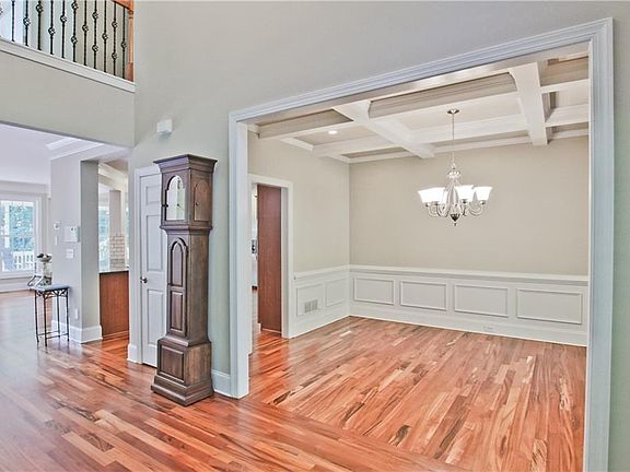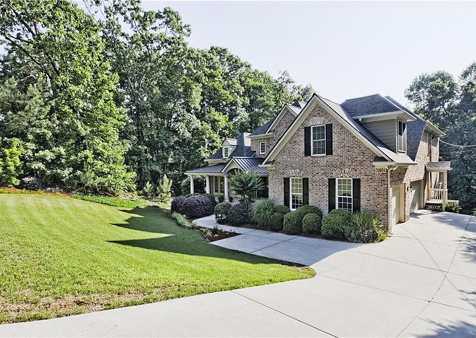 Beautiful home close to Mall of GA. Enter thru the brick porch covered by a new metal roof into a foyer with newly refinished Brazilian hardwoods. Interior & exterior painting w/designer colors. Roof replaced in 2019. Wall of windows looking over deck to wooded backyard. Dining room features coffered ceiling. Guest bedroom & bath on main level. Master Suite w/fireplace & updated bath. Terrace level has second kitchen, wood burning fireplace, game area, full bath, room with closet, and flex room. Top rated Mountain View School Cluster.