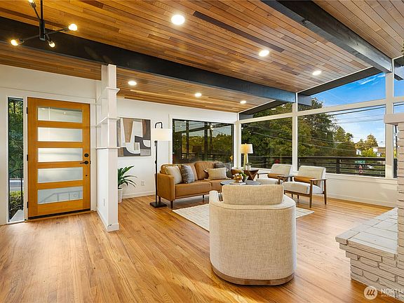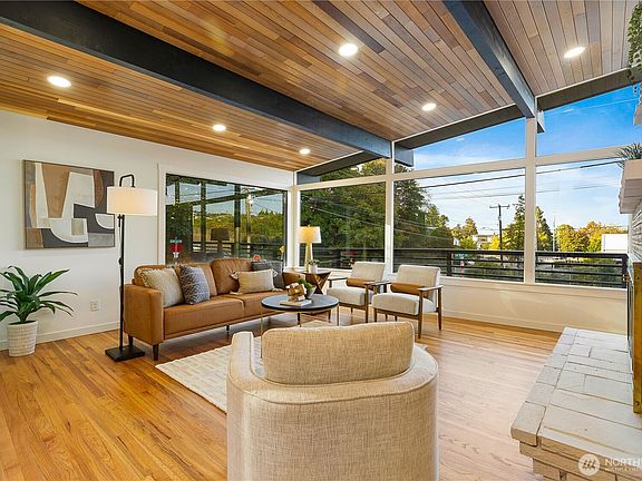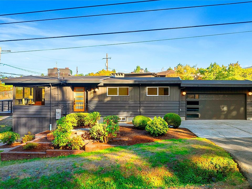 Stunning fusion of MCM design & modern updates in the highly saught after Olympic Manor. Tongue and groove vaulted ceilings, oversized windows, refinished hardwoods & a striking FP define the light-filled living spaces. Stylish dining adjoins a sleek kitchen w/ new cabs & curated finishes. Chic primary retreat boasts a luxe 3/4 BA ensuite w/ all new finishes. 2nd bed + updated full BA up create the ideal plan. Lower level impresses w/ huge bonus rm, wet bar, flex space, office, 4th bed, full BA & huge laundry. Large 2 car garage w/ hobby space, tons of guest parking, great yard with covered patio - this home has it all. New electrical, plumbing, furnace & much more. Mins to beaches, parks, shops and schools!