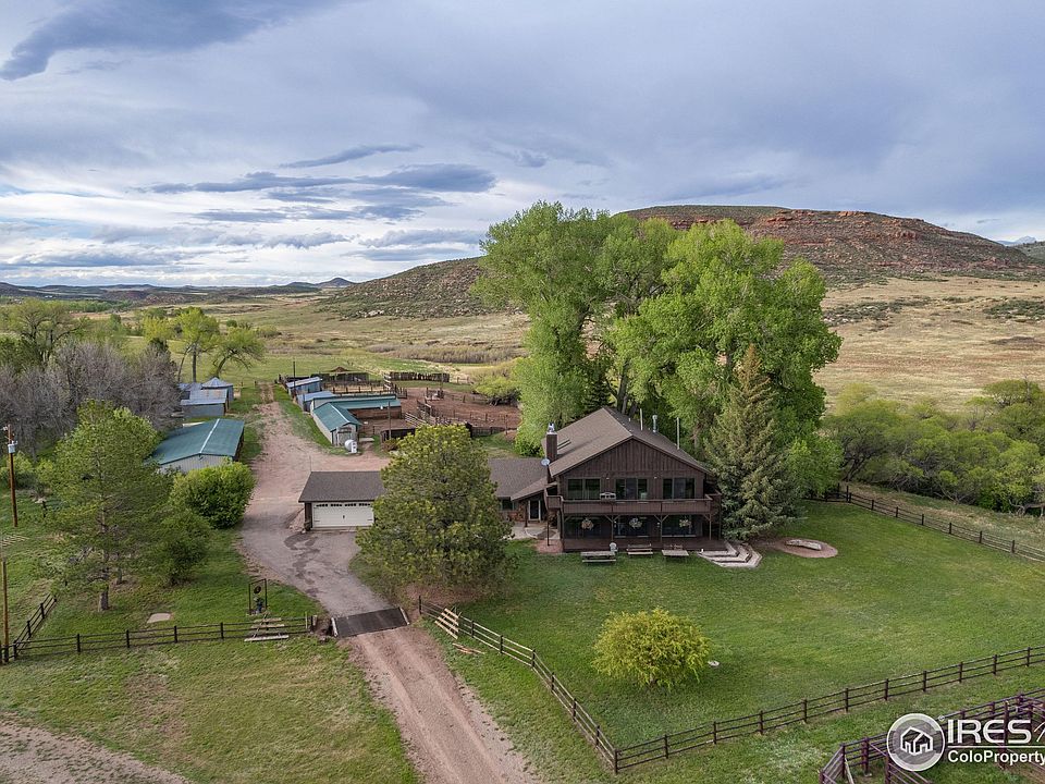 Welcome to Little Red Mountain Ranch, perfectly located 25 min form Fort Collins CO, this 760+-acre ranch offers ample flexibility as an equine facility, small cattle operation, or hunting property.This -+ 760 acres has many uses; the grassy pastures offer grazing for horses or cattle. Fully fenced and crossed fenced. Easy access to the entire property via horseback, side by side or by foot. Cottonwood tree lined creek bottoms and rolling pastures.This property could also be combined with an additional 580-acre recreational piece to the east. See Little Red Mountain Ranch listing as well.The home on the property is a sprawling -+ 5500 sqft home with 5 beds, 5 baths, two attached garages and views that won't disappoint. The original home was built in 1967 and then was added onto in 1989. There are two beds on the main level of the home and three on the upper level. The main master bedroom is located on the upper level, it includes a balcony that looks over the property and soaks in the morning sun. the attached ensuite has double sinks, built-in storage, and a large walk-in closet. The main living area if the home has a wonderful fireplace, solarium and a sunken sitting area for your morning coffee and evening glass of wine.