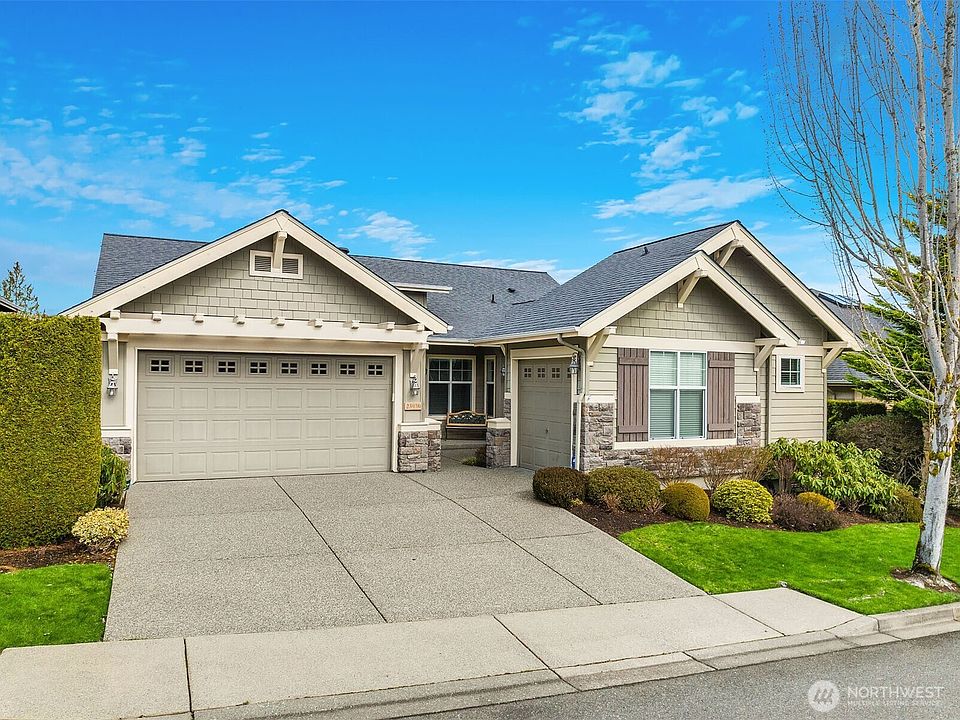 Embrace the lifestyle…Enjoy breathtaking panoramic Cascade Mountain views and a unique sense of privacy from this meticulously maintained residence located in the sought after 55+ Trilogy community. This extraordinary home features the award winning Hemlock floor plan which includes a welcoming front courtyard and offers 2,170 square feet of living space with Dual Primary Suites plus a generous den/office, oversized great room that is flooded with natural light, and 2 car garage with additional golf cart garage. The entertaining sized composite rear deck overlooks the powerful mountain vistas and is a perfect space to enjoy a cup of coffee in the morning or relax with friends at the end of the day.
