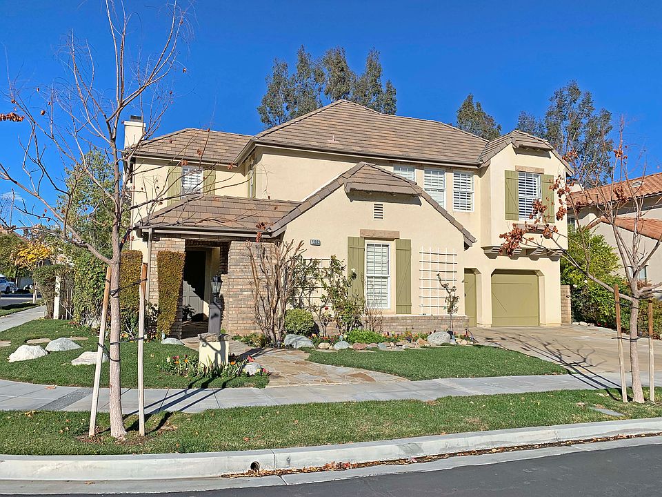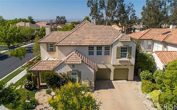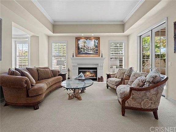 Welcome to this beautiful Bridgeport Island home with stunning lake water view! 1st time on the market since built. This is one of the largest floor plans and this home has been lovingly cared for. Boasting a beautiful cooks kitchen with water views that features a huge granite island, granite counter tops, breakfast area, walk-in pantry & opens to a large family/great room with a fireplace & built-in media niche. The formal dining room has 20 ft. ceilings and can easily seat 10 or more guests. The living room also has a fireplace and french doors & detailed bead board ceiling. Guest Suite or downstairs second master suite bedroom or bonus room/gym with full bath with private separate entry. The huge upstairs master suite & sitting area large balcony patio with lake views! The master bath has his/hers closets, dual vanities, large walk in shower. There is crown molding throughout, plantation shutters, tile flooring, surround sound, central vacuum system, mirrored wardrobe closets, ceiling fans. Plenty of outdoor entertaining room with an extensive custom built patio cover and gorgeous stone hardscaping. Additional screened patio off the kitchen nook. Fabulous location overlooking The Beautiful Lake Water Views!! Bridgeport amenities include Pool, Spa, Clubhouse, Paddle Boats Etc. Walking distance to Restaurants and Shopping! Award Winning Schools! Show Your Fussiest Buyers! One of the Few Gated Valencia Communities! Excellent Location NO MELLO ROOS!!!