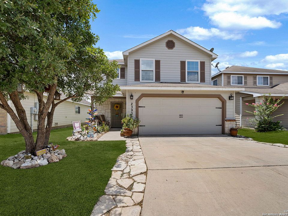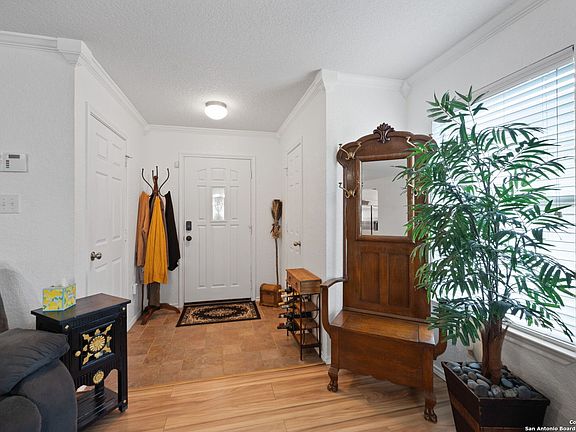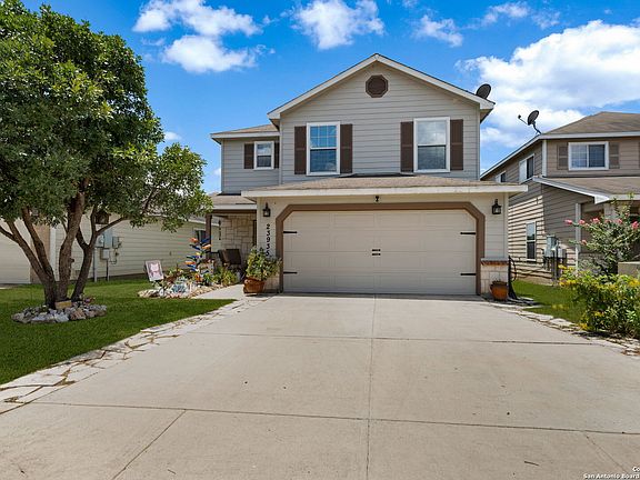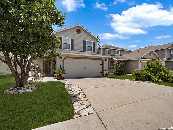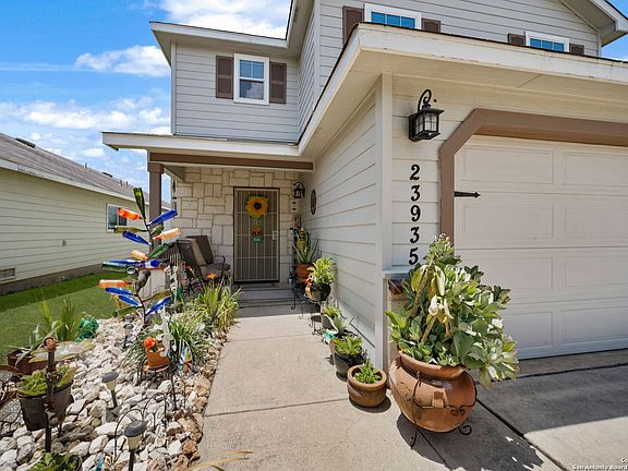 Welcome to this stunning 3-bedroom, 2.5-bathroom home nestled in the highly desirable Bulverde Village community. With a spacious upstairs loft and NO carpet throughout, this home offers both comfort and style. The entire downstairs showcases elegant crown molding and hard surface flooring, creating a clean and polished look. The upgraded kitchen features bright white cabinetry, sleek granite countertops, and modern finishes-perfect for any home chef. The generous upstairs master suite boasts a large walk-in closet, while the backyard is ideal for entertaining with a shaded pergola, 220V hookups, and a separate storage shed. Backing to a peaceful greenbelt, you'll enjoy added privacy and nature views. Freshly painted inside and out, this home is move-in ready. Additional recent updates include a rebuilt HVAC system (2023), Hot Water Heater (2023), and tint on windows. Enjoy a short commute to Highway 281, top-rated NEISD schools, shopping, and restaurants. Fantastic amenities including a park, volleyball court, walking trails, and more! Don't miss this incredible opportunity-schedule your showing today!