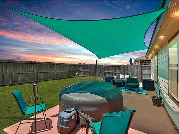 NO BACK NEIGHBORS/COVERED PORCH/EXTENDED PATIO W/SAIL & HOT TUB! Beautiful 3/2/2 split plan w/primary bedroom at back of home for privacy. Covered entry w/3 lite rain glass front door. Upon entry, coat closet to the left & garage entry on right. Vinyl plank floors throughout main & wet areas, carpet in bedrooms. Kitchen w/breakfast bar is open to the family room & dining area, 5 burner gas range, micro, under cabinet & bar lighting, plenty of counter & cabinet space, walk-in pantry w/light sensor & refrigerator stays! Hall off family room leads to two secondary beds, linen closet & shared bath. Behind kitchen is the dining area w/ample space & door to your private back yard. Utility room is down hall from dining & Front load (GE Smart) washer/dryer stay! Primary bed w/garden tub/separate shower, linen & walk-in closet is across the hall. Numerous updates, easy access to 290, Grand Pkwy, schools, parks, shopping, medical, restaurants, entertainment & more. A must see. WELCOME HOME!