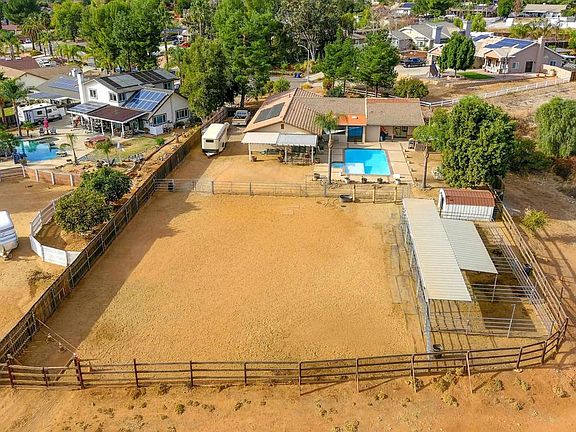 Horse Amenities, Pool, Owned Solar! Have it all! Ranch style home located in the San Diego Country Estates. The open floor plan presents 4 bdrms, 2.5 Baths, 1 optional bedroom-office, family style kitchen, indoor laundry room, large bedrooms, wood burning stove and lots of natural light. Property offers new HVAC, roof, completely remodeled pool, covered patios, Quiet-Cool whole-house fan, laminate flooring, carpet, new interior paint, exterior Ceramic Coating, ceiling fans/light fixtures and OWNED SOLAR. These recently upgraded features add MUCH value! Well maintained lot boasts a large turn-out/arena, 4 stalls, riding trail access, outdoor entertaining, gardening, fruit trees and amazing mountain VIEWS! Plenty of room for trailers, RV, boat and more. Come take a TOUR!