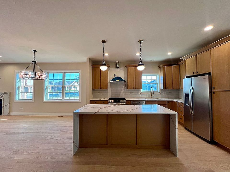 The spacious island with seating is a dream for home chefs, providing ample room for meal preparation and enjoying coffee and conversation. Beyond the kitchen, you’ll find a formal dining area that overlooks the inviting main living space. Look forward to unwinding in front of the cozy gas fireplace on those brisk Midwestern winter evenings.