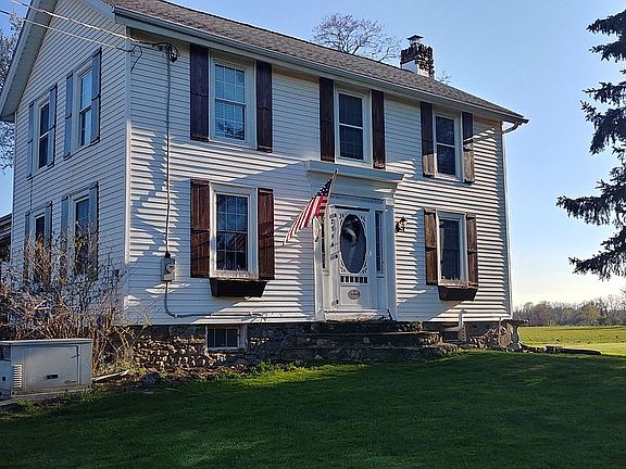 Value Range Pricing: Seller will consider offers between $264,900 - $274,900. A unique opportunity to own a piece of history awaits in this Colonial beauty! 4 bedroom, 2 bath home has been lovingly restored and is perfect for the growing family or antique lovers/history buffs who will appreciate the carefully preserved features. All accomplished along with many updates including roof, HWT (2016), windows (2013), updated eat in kitchen and bath (2020.) Not only is there a formal living room and dining room but also a cozy family room with vaulted ceiling and a new wood burning fireplace (insert), 1st floor master bedroom and bath. All on 8 acres (suitable for horses) with three 13x20 outbuildings with electric & water, plus a separate barn, above ground pool (2015) & invisible dog fence! So much to offer! Please check the virtual tour, drone images & make your in person appointment today!
