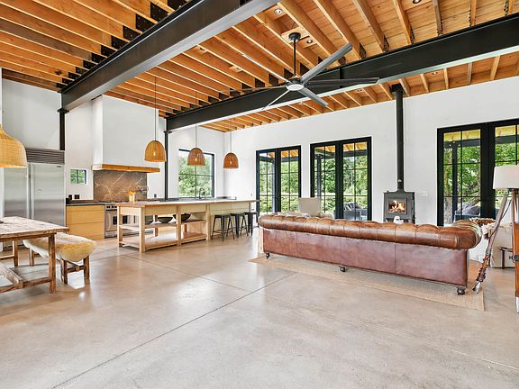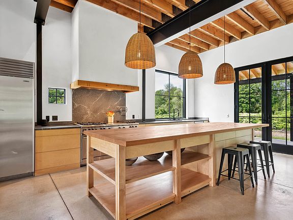 Newly constructed Modern Vermont Farmhouse residence on 14 acres with absolutely amazing river views, 13-foot ceilings, gourmet kitchen, oversized french doors and windows throughout, radiant-heated concrete floors, first rate finishes, appliances and mechanicals located just 6 minutes to the Woodstock village green and 17 minutes to the Killington Skyeship base lodge. The first level is comprised of a large, open-format living space with gourmet kitchen, dining and living spaces, plus a first level bedroom with modern ensuite bath. Upstairs is another large open floor plan living space with a half-bath, and a full bedroom with ensuite bath. Each side of the upstairs living space has loft sleeping bunk-areas for kids (of all ages!). SEE DEDICATED PROPERTY WEBSITE FOR VIDEOS, VIRTUAL WALKTHROUGH, FLOORPLANS AND MORE.