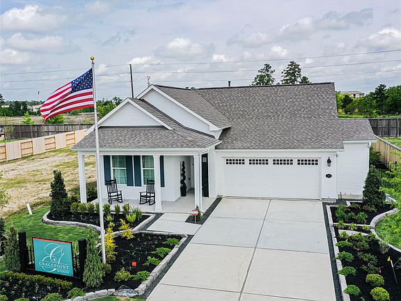 MODEL HOME Built by Gracepoint Homes this 1 story is beautiful. A covered front porch welcomes you. As you enter you will find a study and a bedroom with a full bath. At the end of the spacious entry hall you will find a gourmet kitchen with stained cabinets, granite counter tops and a large island that is open to a casual dining and family area creating an open yet cozy feel.. A beautiful painted brick fireplace completes this space. Outside the family room is an covered patio perfect and gorgeous landscaping perfect for entertaining. The private master suite has a en-suite bath and oversized walk in closet. 2 more bedrooms and a full bath complete this home. Shopping, dining and entertainment are only minutes away from this amazing master planned community! Convenient to I45,The Woodlands and Lake Conroe.