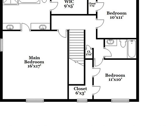 Stunning second-floor main bedroomLarge windowsWalk-in closetDouble sinkEat-in kitchenCeiling fan