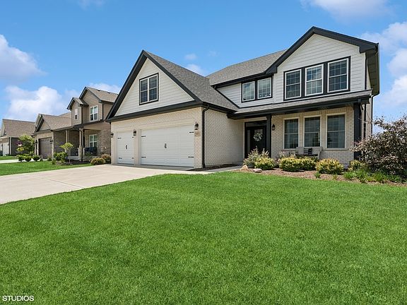 Skip the delay and headache of new construction... enjoy the stunning like-new home by CastleHill Construction in Manhattan's sought-after Hanover Estates NOW. This 2-story home offers 5 spacious bedrooms, 2.5 baths, a full basement, and a 3-car garage. The main level showcases 9-foot ceilings and a bright, open layout anchored by a large kitchen that boasts a separate walk-in pantry, coffee bar, a center island, solid surface countertops, stainless steel appliances, double oven, and upgraded cabinetry. The elegant foyer sets the tone upon entry. Upstairs you'll discover a versatile loft-ideal as a second living area or home office, plus spacious bedrooms and generous sized closets. The primary suite includes a vaulted ceiling, dual vanities, a standalone soaking tub, and a glass-enclosed shower. Thoughtfully designed with today's lifestyle in mind, this home blends quality finishes with a smart, livable floor plan.