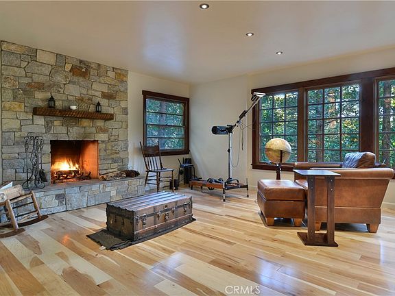Adorable mountain cabin in the forest, has been meticulously remodeled. This is the one you have been looking for. The complete redo includes solid hickory flooring, solid alder cabinets, doors and trim. Lower bath has radiant floor heating and claw-foot tub. Fireplace was redone with real stone from Montana Rock works. Granite countertops, and recessed lighting. Pex A plumbing and a newer top of the line tankless water heater. Most windows replaced with newer dual pane windows. Newer electrical meter. Even a large private deck that is fairly new and the perfect place to enjoy the forest setting. Good sized living area and open kitchen area/dining room. There is even a large build up area for storage. All this was done, but maintains that mountain charmer feel from the 50's. You won't have to do anything, but just move in, and begin living your mountain dreams. Close to Lake Gregory and downtown Crestline.