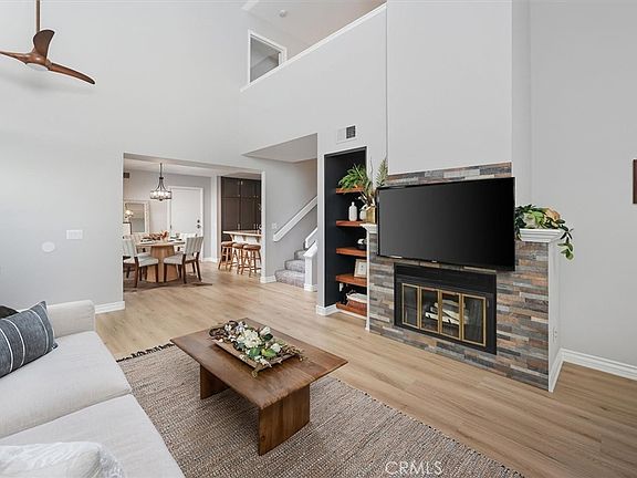 Beautiful Town House in the heart of Valencia! 2 Bedroom, 2 Bath plus large LOFT that could be used for an office, playroom, or if enclosed, a THIRD BEDROOM. This upgraded home has so many features. A downstairs and upstairs bedrooms with ensuite bathrooms! As you enter, you will be greeted by vaulted ceilings and an open remodeled kitchen with stainless steel appliances and granite counters. Flooring with luxury vinyl and upgraded light fixtures. There is a stacked stone fireplace to enjoy! There are 2 patio areas down as well as another outdoor space with artificial grass. Downstairs bedroom has a walk- in closet and direct access to a remodeled bathroom with walk in shower. Upstairs has a spacious loft and the second primary bedroom with remodeled bathroom. There is a huge balcony off this bedroom. Lots of outdoor living space with this home! The 2- car attached garage has epoxy flooring, newer washer and dryer as well as newer water heater and furnace. Also included are 2 flat screen monitors and a fridge. This property is close to shopping, public transportation, near the hospital and close freeway access to make for easy commutes. This home is a MUST SEE!