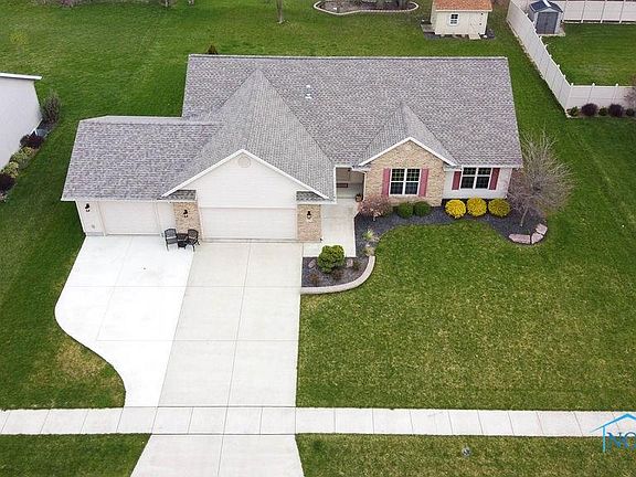 Located on Findlay's East side in the Van Buren School Districts The Living room boasts vaulted ceiling and gas fireplace. Kitchen features granite counters, breakfast bar, stainless appliances and dining area. Master suite has private bath with double bowl vanity. Partial finished basement with rec room and storage. Large stamped concrete patio, and shed. A 3 car heated garage to top it all off Don't miss this one