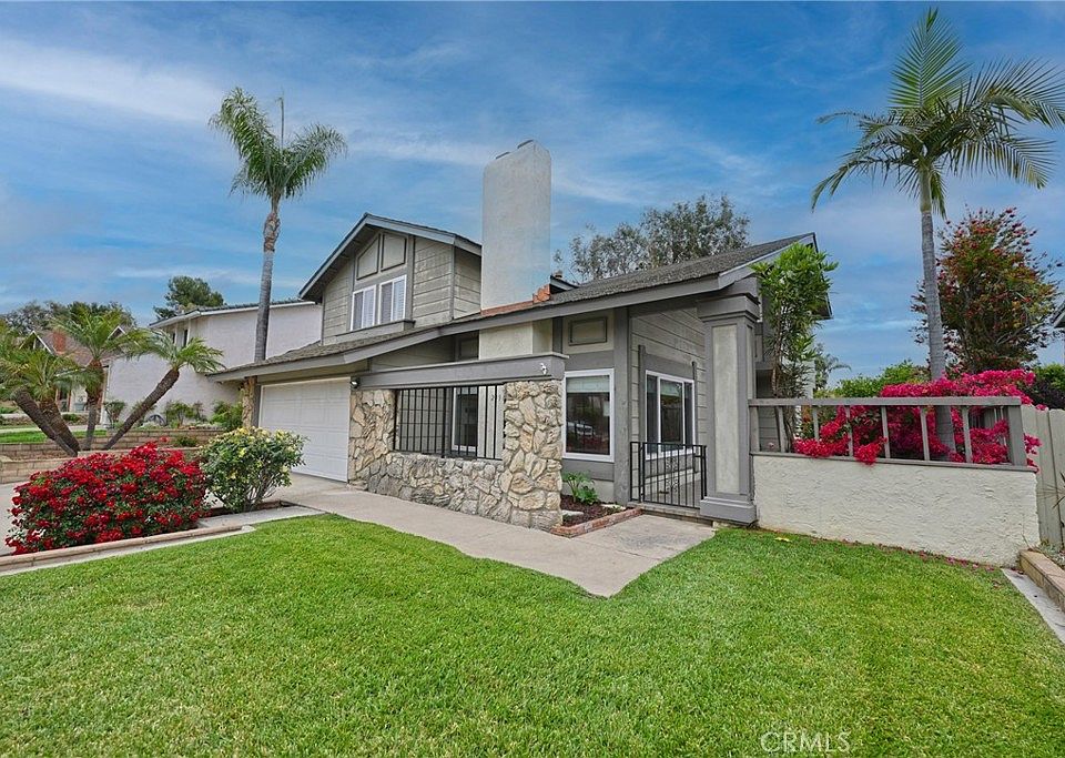 Wonderful opportunity to own gorgeously remodeled Country Hills Brea residence. This fabulous property offers 2,069 living square feet with a 4 bedroom option(currently an open bonus room) and 2.5 bathrooms and features numerous stunning upgrades and amenities including: a remodeled kitchen with custom cabinetry, stone countertops, mosaic tile backsplash & stainless steel appliances, open to a family room with stone fireplace, built ins, mantle, & dining room with custom light fixture, large living room with brick fireplace with mirror inlay, custom built in entertainment center, beautiful hardwood floors, double paned windows, ceiling fans, custom light fixtures, pex plumbing, newer HVAC ducting, custom window shades & shutters, gorgeous wrought iron/glass/wood entry door, all 3 bathrooms have been remodeled with stone countertops, new tiles floors/accents and new fixtures, spacious primary bedroom with walk in closet, 2 car attached garage with built ins, water softener, yard pavers, fruit trees, patio cover, artificial grass, low HOA, no mello roos and nearby parks, shops and restaurants.
