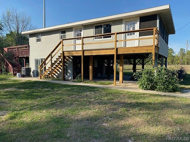 Country living on this 9.62 acre tract of land, 2 bedroom 1 bath stilt home, parking underneath, 2 rooms downstairs that could be storage or possible more living space, large wood deck to overlook the beautiful land, fenced and cross fenced, small two stall lean to, central heat/air 2019, roof 2018, cell phone tower on property with a 97 year lease (no income from tower) and have to allow access for them to maintain, updated bathroom and kitchen, woodburning fireplace in living room, screen porch to enjoy coffee and sunsets, 15 minutes to downtown Dunnellon, Rainbow springs state park within 10 minutes, Ocala and Gainesville just a short distance